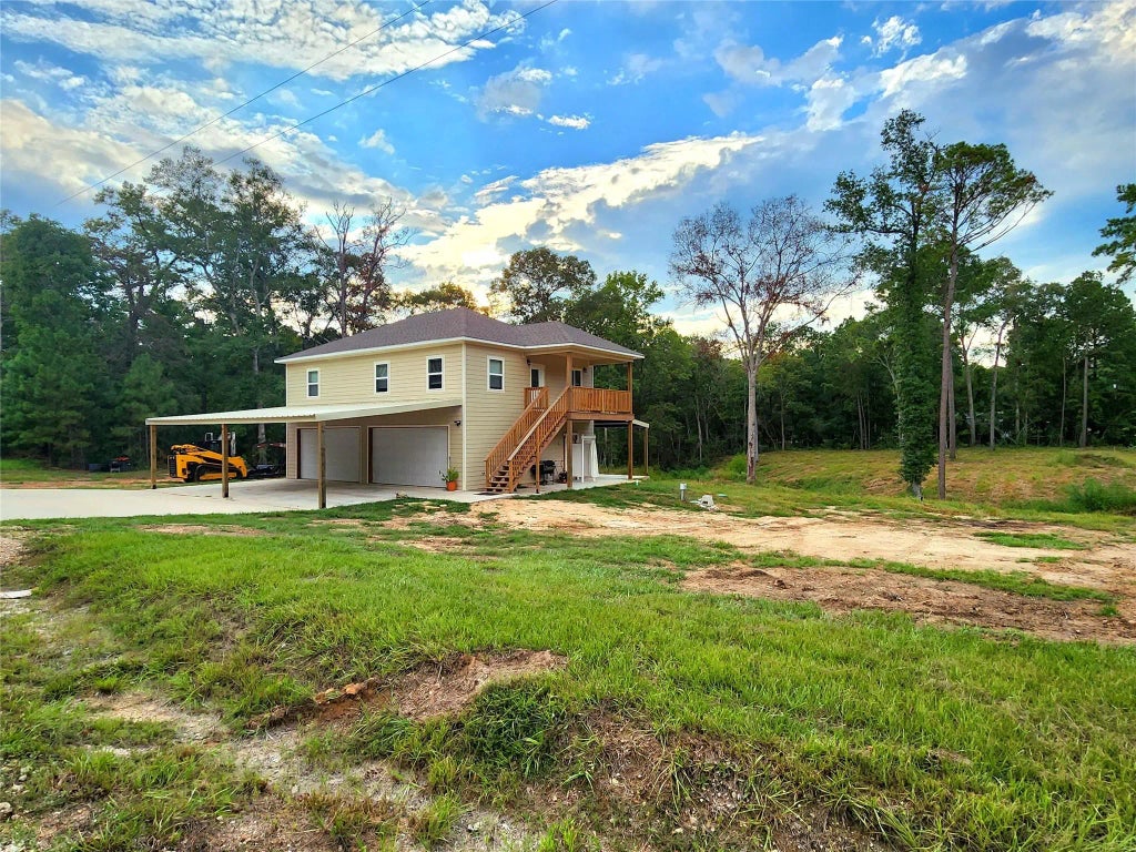 This amazing better than new custom built home is the one you've been looking for! Set on 1.5 UNRESTRICTED acres and backing up to a seasonal creek, you'll enjoy the peace and solitude you've been craving! This property is set back in the country but is still less than 10 minutes to Lake Livingston! Imagine enjoying a day on the lake, and coming home to your stunning property to enjoy a party with friends under your amazing oversized covered porches, stargazing with your loved one around a campfire, cooking a gourmet meal in your spacious kitchen or just relaxing in your new home with tasteful high end finishings throughout! The 4 car garage has room for all your lake toys, lawn gear and space for a workshop! Or you can finish the garage and create a separate living space! With all the plumbing easily accessible, plus an existing utility spot, it would be a breeze! There's room to roam on the acre and a half and it's unrestricted! Don't wait or you'll be too late!