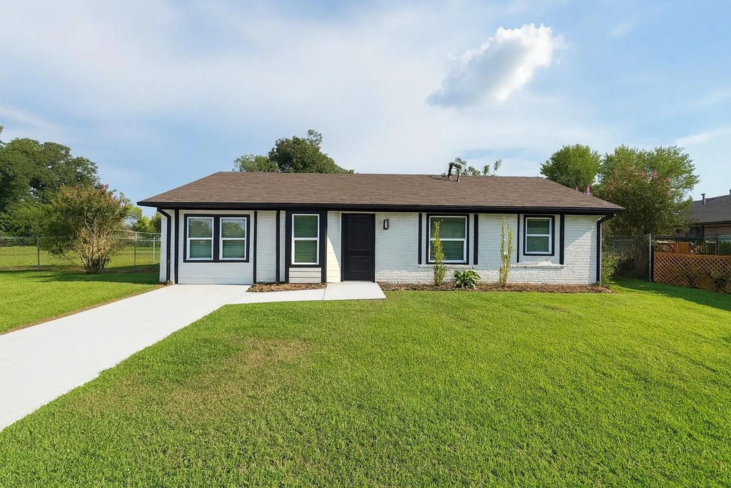 Fully renovated 4-bedroom, 2-bathroom single-story home with numerous updates inside and out. Interior features include vinyl flooring in all bedrooms and tile in the living room, dining room, kitchen, bathrooms, and laundry room. The kitchen has white cabinets with granite countertops and new appliances. Bathrooms are remodeled with white cabinets, granite countertops, new mirrors, and new bath and wall tile. Additional upgrades include new PEX plumbing, new electrical panel, recessed lighting in the primary bedroom, kitchen, and living area, double-pane windows, new ceiling fans, and fresh paint and texture throughout. Exterior improvements include new siding with fresh white and black paint, as well as a new driveway. The home also offers a spacious backyard, ideal for outdoor use. Conveniently located near schools, parks, shopping, and major highways. No HOA.