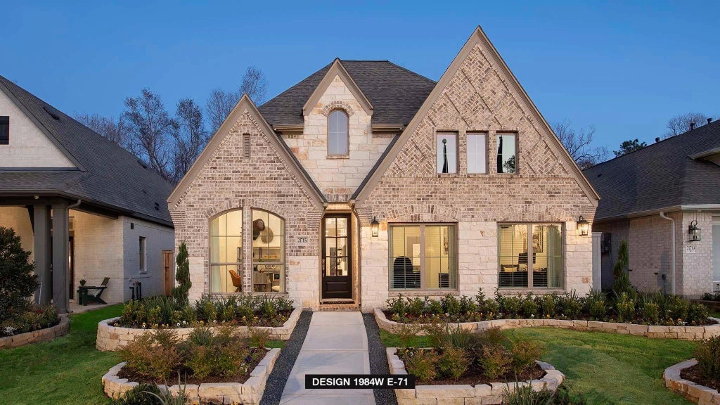 READY FOR MOVE-IN! Former Model Home. Home office with French doors set at entry with 11-foot ceiling. Open kitchen offers center island and corner walk-in pantry. Dining area opens to spacious family room with wall of windows. Private primary suite includes bedroom with wall of windows. Dual vanity, corner garden tub, separate glass-enclosed shower and large walk-in closet in primary bath. Abundant closet space and natural light throughout. Model home upgrades include accent paint, drapes, alarm system, sprinkler system, and additional landscaping. Covered backyard patio. Mud room off two-car garage.