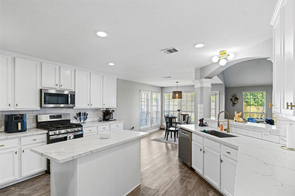 Welcome home to your beautifully updated two-story brick home in Shadow Creek Ranch! This spacious 5 bed, 3.5 bath home boasts a remodeled kitchen, fresh flooring and interior paint, upgraded bathrooms, and gorgeous landscaping for amazing curb appeal. The kitchen opens to the family and breakfast rooms, perfect for entertaining. The primary suite downstairs features a walk-in closet, double vanities, jetted tub, and separate shower. Upstairs you’ll find four additional bedrooms plus a large game room. A generously sized lot provides space for your dream outdoor living area. Community amenities include pools, clubhouse, courts, trails, playgrounds, and beautiful green spaces. Additional updates include both water heaters and the upstairs A/C unit (new in 2021, per seller). Refrigerator, washer, and dryer stay! Home has never flooded (per seller). Don’t miss the chance to make this one yours!