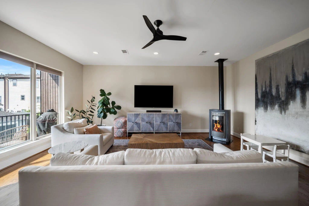 This stylish townhome blends modern design w/ functionality just steps from Memorial Park complete w/ a BRAND NEW ROOF. The 2nd floor living spaces feature soaring ceilings, hardwood floors, & a sleek dry bar w/ wine refrigerator. The open-concept kitchen showcases contemporary finishes, stainless steel appliances, & a spacious layout. Just beyond, a large balcony offers the perfect spot for outdoor relaxation. As you ascend to the next floor, you will notice a thoughtful office nook. Upstairs, the 3rd floor is home to an impressive primary suite w/ a walk-in closet, & ensuite bathroom. Completing this floor is a spacious landing w/ room for a home office or exercise area & a secondary bedroom with an ensuite bathroom. The 1st floor adds even more flexibility w/ a 3rd private bedroom & ensuite bathroom. No maintenance fees, walkable access to Memorial Park, & quick access to I-10 and 610. Notable upgrades include a brand new roof, recently installed HVAC, & new water heaters in 2024.