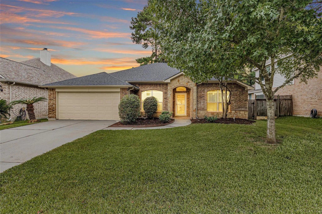 NO CARPET, NEW APPLIANCES, FRESHLY PAINTED & READY! This 1 story, 4 bedroom brick home is located on a pretty street near the lake. Open layout w/ a split bedroom plan, this home also sits on a spacious lot offering a large fenced backyard. The attached 2 car garage opens up right into the home's well equipped kitchen, featuring granite counters, 42" warm wood cabinets, undermount SS sink, dishwasher, electric range, microwave & includes the refrigerator. Attached breakfast room has nearby laundry & pantry for even more storage. Primary bedroom is spacious, ensuite offers double vanity, soaker tub, separate shower & a large walk in closet. Large Living area overlooks the backyard patio, & has a wood burning fireplace for cooler months. Front & back doors include a glass/screen storm door, large fenced backyard & spacious patio. Responsive local Landlord, no faceless management company to contend with. Montgomery ISD & great Walden amenities!