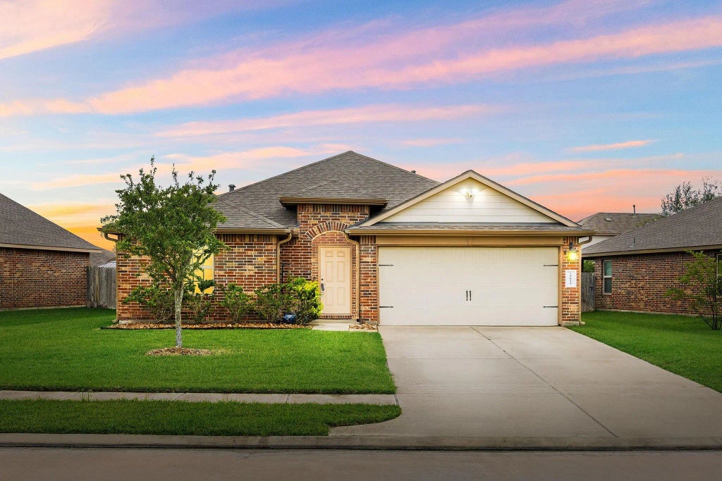 Smart & stylish Dr. Horton 1-story in Tamarron loaded w/tech upgrades: RING doorbell, smart thermostat, security camera, updated fixtures & window film throughout. Inside, an open layout connects the kitchen, dining & living areas—great for gatherings or everyday flow. Kitchen features an oversize island, granite counters, stainless appliances, subway tile backsplash & rich wood cabinetry. Engineered hardwoods in main living, tile in wet areas, carpet in bedrooms. Primary suite includes dual vanities, soaking tub, separate shower & walk-in closet. Two secondary bedrooms share a full bath. Spacious utility room adds function. Enjoy a private backyard w/extended patio space—ideal for lounging or entertaining. Zoned to LCISD. Tamarron offers top-notch amenities: resort-style pool, fitness center, splash pad, trails, lakes, parks & sports fields. Convenient to I-10, Grand Pkwy, Westpark Tollway, shopping, dining & more.