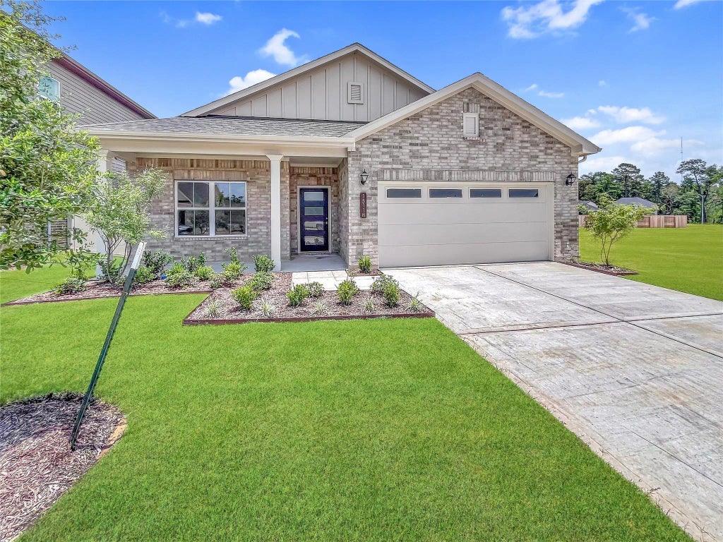 Experience "The Pearson" by Smith Douglas Homes in Audubon—a beautifully crafted 1-story, 3-bedroom, 2-bath home designed for comfort and style. The open-concept layout features a mudroom, a spacious kitchen with grey 42” upper cabinets, granite countertops, a large island with pendant lighting, and stainless steel appliances. Cozy up by the linear electric fireplace with wall-hung TV prep. Elegant finishes include vinyl plank flooring throughout the main living areas and primary suite, upgraded carpet in secondary bedrooms, and upgraded tile in baths and utility. The primary bath boasts a separate tub and shower. Enjoy outdoor living with a front covered porch, covered rear patio, a fully sodded yard, full irrigation, and full gutters. Energy-efficient with Tech Shield radiant barrier—AVAILABLE NOW!