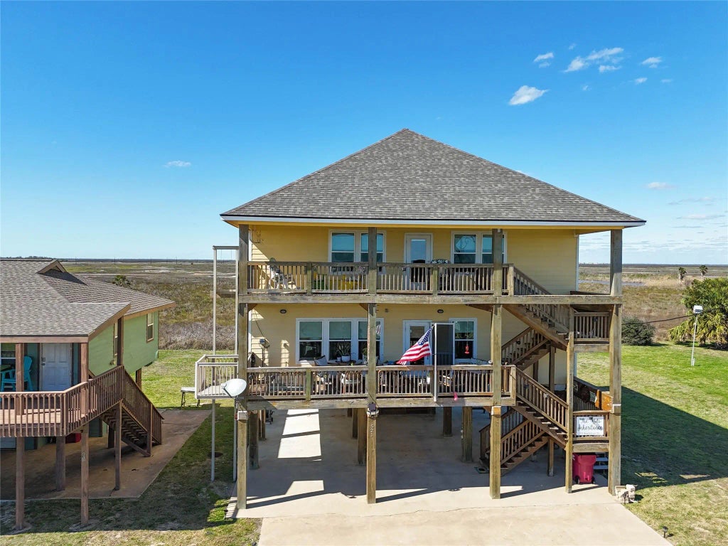 Majestic beach views from this home located in the Sterling Shores Subdivision of Matagorda. Walk out on to three separate porches w/beach views as well as east bay! BRAND NEW ROOF! Come and view your new dream home on the beach awaiting your friends and family to arrive. This home could be your permanent home on the beach, or a secondary home utilized for rentals. The open concept lends itself to entertaining and beach memories! Granite countertops with stainless steel appliances. Upstairs has a spacious game room/tv room/two bedrooms with spectacular views of the beach. Walk out onto the upper porch and take in the panoramic views of the gulf. Imagine yourself waking up and viewing the beach and in a few minutes, you can be on the beach walking and enjoying the serenity. Matagorda beach has miles to explore via walking or driving to have fun on the beach! Bonus to have an elevator included. Parking available under home. Make an appointment to view this impressive property!