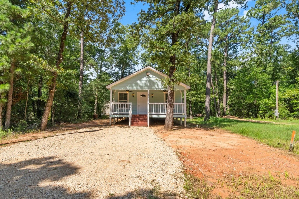 ADORABLE BRAND NEW CONSTRUCTION. This home offers 1,100SF, 3 bedrooms, 2 baths, Mini-Splits in each room. Open Concept living space, island kitchen for large gatherings. Large Walk-in closet in the primary bathroom. Large Walk-in showers in each bathroom. Covered Front Porch and Side Porch to enjoy your favorite book and nature. Tranquil country setting close to Lake Livingston to enjoy the neighborhood boat ramp. Enjoy the comfort and convenience of modern living in a charming New Construction. Call today!