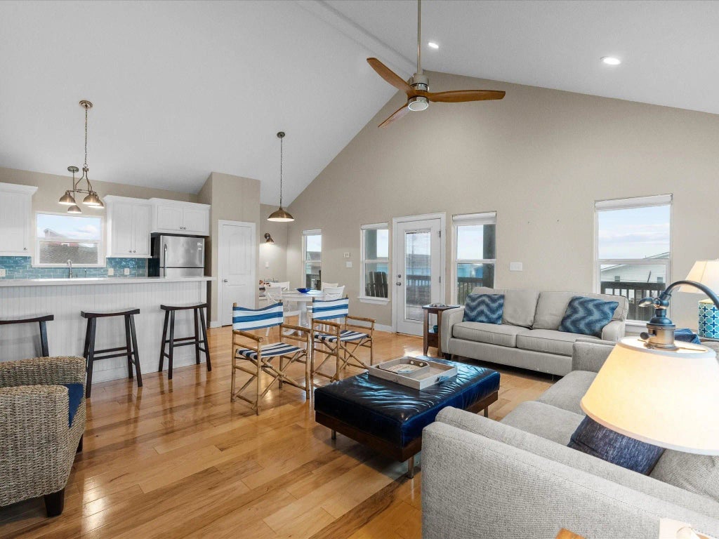 Please view the 3D Tour. This home is located on the east side of Surfside Beach on the 2nd row and has legal access to the beach through a beachfront lot. What a find! Downstairs is a filter, garage, and shower. Upstairs, you will love the deck and the views. Enter from the deck into an open living room, dining area, and kitchen. Down the hall are two bedrooms on the right with a full bathroom in between them, and to the left a laundry area, and primary bedroom with a private bathroom. The furnishings will be removed, so bring you vision and what you have been saving for your beach home.
