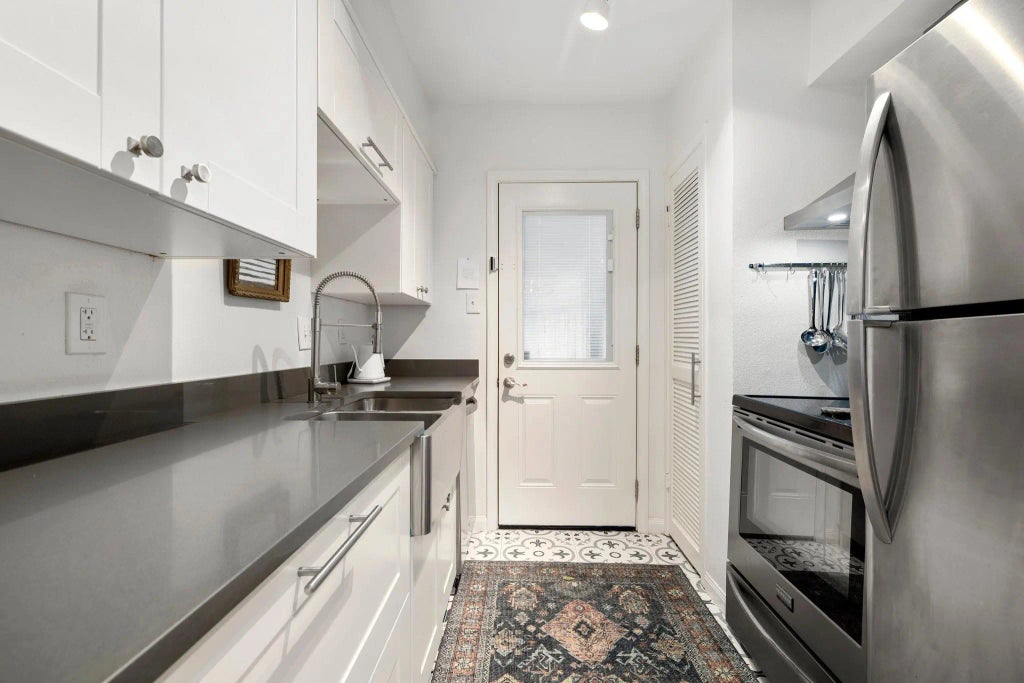 Uncover urban living at its finest in this unique 1st-floor 1-bed/1-bath condo tucked away in the heart of Stoney Brook. This city gem is a true rarity. Step inside & be wowed by the recent transformation, boasting quartz countertops in the kitchen and stainless steel appliances. Laminate wood floors flow seamlessly throughout, creating an atmosphere of sophistication, while the kitchen and bathroom feature elegant tile flooring. What sets this condo apart is the dual entrances, one leading to a spacious partially covered private patio—a true luxury for city dwellers, ideal for leisurely days and entertaining. Convenience is at your doorstep, with easy access to the Galleria, freeways, and restaurants. Despite its central location, this condo offers a peaceful escape from city life's hustle and bustle. Your urban sanctuary awaits. **Completely furnished. Electricity and Water included**