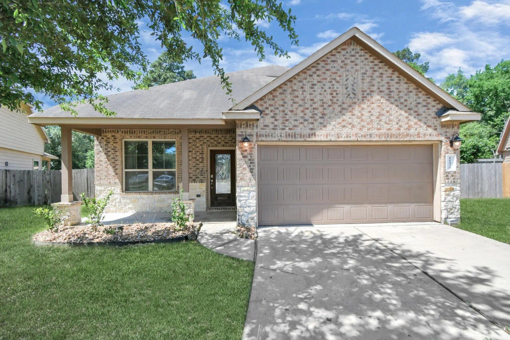 Welcome to this meticulously maintained 4-bedroom, 3-bath home, ideally situated on one of the largest lots in the desirable Woodmark community. The interior features a spacious living area with soaring ceilings, a well-appointed kitchen with granite countertops and ample cabinet space, and a large dining room perfect for family gatherings. Enjoy a stunning brick and stone exterior, a covered patio, and a generously sized backyard—ideal for outdoor entertaining or relaxing. Zoned to Conroe ISD with convenient access to local amenities. Room measurements are approximate; please verify independently. Don't miss out—schedule your tour today before it's gone!