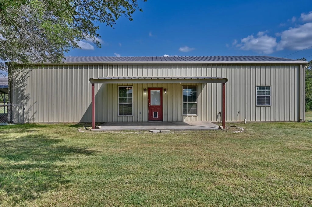 SELLER HAS ADJUSTED THE PRICE! It's hard to find a home on small acreage, BUT HERE IT IS! Located in desirable Fayette County down a secluded country road is a 3bd/2bth, 2220 sqft metal home with stained cement floors FOR EASY MAINTENANCE! All appliances convey, including the washer and dryer located in the generous laundry room. This is an open concept home and as such the kitchen and entryway lead directly into the great room complete with a vaulted ceiling. Other amenities include a roll around kitchen island, a fenced back yard, a covered patio, a water well and septic system, a 2 vehicle carport and a storage shed for lawn equipment. Bring your decorating ideas since this is a blank slate! Buyers will need to survey the property.. property lines are estimated. An electronically staged great room is added to give you an idea of how furniture can be arranged. Schedule your showing now... this won't last long!