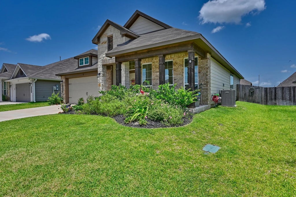 Located in the desirable Vintage Farms subdivision, this beautifully landscaped home offers stylish living with numerous upgrades throughout. Inside, you’ll find durable vinyl plank flooring, granite countertops, and 9-foot ceilings that create an open, airy feel. The kitchen features a striking backsplash, an oversized island with sink, and modern finishes—perfect for everyday living and entertaining. The spacious primary suite includes a large walk-in shower for a spa-like retreat. A versatile study/bonus room provides the ideal space for a home office, craft room, or additional living area.