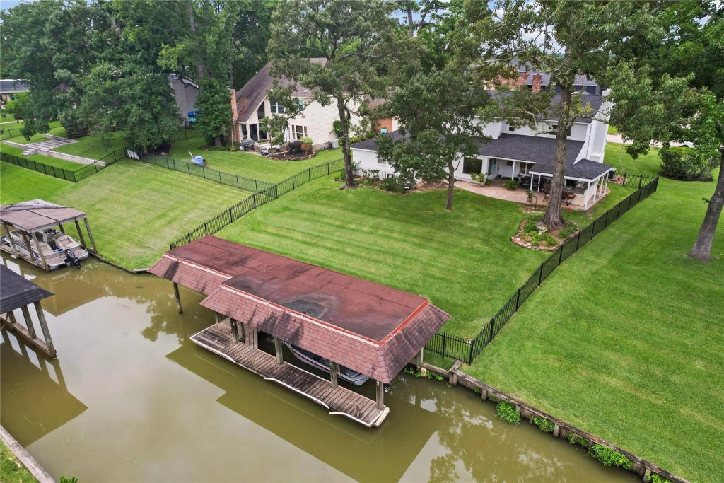Discover WATERFRONT living in this beautiful 4 bedroom, 2.5 bath, 2 car garage home. Enjoy direct water access from your own private boathouse, complete with boat lift and dual jet ski lift ideal for effortless lake days. Enjoy the views with meals on the covered backyard patio made in your outdoor kitchen. This home boast porcelain wood tile flooring, quartz countertops throughout, recent roof and hardie plank, updated custom wood blinds and much more. Large picture windows along the back of the home ensure the views are seen from every room. The backyard is fenced, primary bath recently updated. Tranquil Atascocita Shores Community includes fishing, tennis, pickleball courts, pools, private community boat ramp. You have to see this one to appreciate all it has to offer. I promise you are going to love this view!
