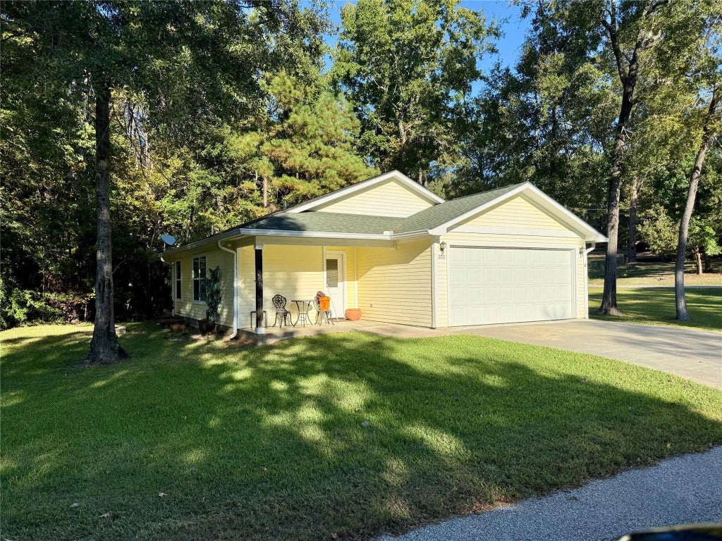 Welcome to Cedar Point on Lake Livingston! This charming 2 bedroom, 1 bath home features a spacious kitchen with stainless appliances and granite countertops. Enjoy the serene wooded terrain from the back covered patio on over half an acre of land. With lake access, the subdivision boat launch, park, pool, and clubhouse are just a stone's throw away. The attached 2 car garage provides convenience, while the well-maintained property offers plenty of privacy. Don't miss out on this perfect retreat by the lake!