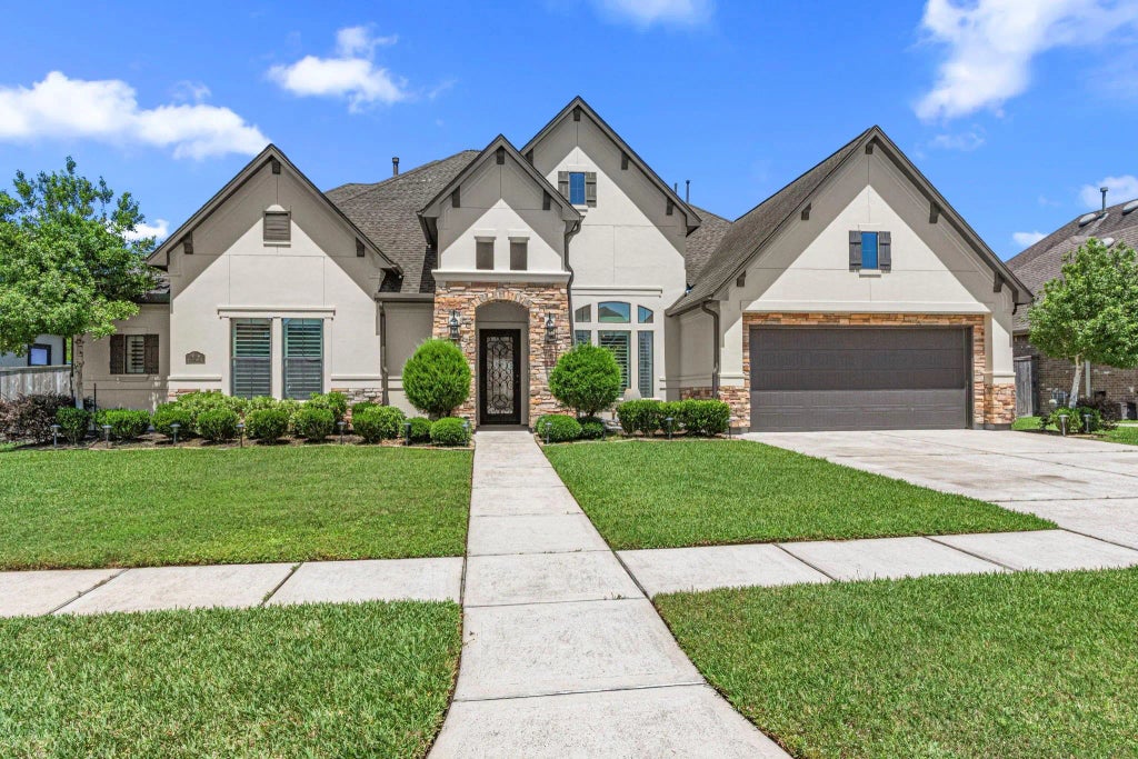 Stunning and well maintained custom built home in Sterling Creek. Home is 1.5 stories and includes 5 bedrooms, 5 bathrooms + 3-car garage. Kitchen is comprised of a large island open to living room, gas cooktop, double ovens and oversized built-in fridge. The covered patio includes a barely used outdoor kitchen, a quiet and private place to relax with no back neighbors. Zoned to Friendswood ISD.