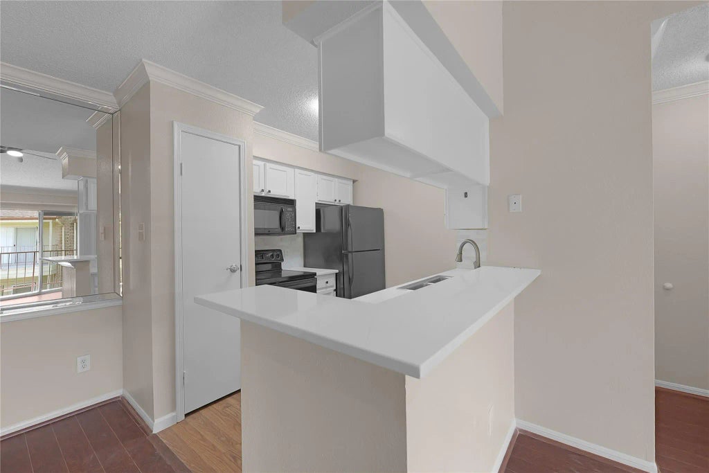 LOCATION at it's best if you are looking to be near Medical Center, Downtown, Meyerland and Galleria. Clean and ready for move in. 2 Bedroom/ 1 bath upstairs unit tucked in a quiet gated community with assigned parking spot. New quartz counter tops, bathroom vanity, walk in shower, vaulted ceilings, built-ins, balcony and BONUS comes with a full size washer/ dryer. HOA covers gate access, water, trash, cable, pool and exterior insurance.