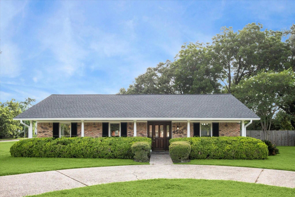 Situated on an expansive, tree-filled, nearly 1 acre lot, this beautifully maintained single-story ranch offers timeless charm and exceptional space inside and out. The home features multiple living areas with rich wood-like flooring, a sunroom filled with natural light, a kitchen with granite countertops, and a spacious primary suite with a luxurious en-suite bath. Additional bedrooms are generously sized with easy access to updated secondary baths. Outdoors, enjoy a sweeping backyard with mature oaks, a detached shed, lush landscaping, on-site well, and a flagstone walkway—perfect for relaxing or entertaining. A rare find! Updates include (all per seller): AC 1 replaced Nov. 2022, AC 2 replaced 2010, roof replaced 2021, fence replaced 2025, heater/furnace replaced 2019, whole home generator installed March 2025.