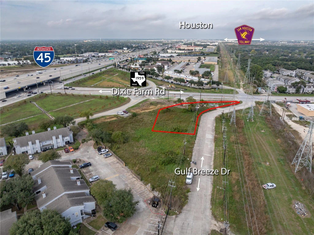 This prime commercial property is ideally located off I-45 at the intersection of Dixie Farm Road and Gulf Breeze drive, offering excellent visibility and accessibility. The property is in close proximity to retail centers, dining options hotels and residential neighborhoods. . Nearby businesses include Ellington Field, the Lone Star Flight Museum, The Pearl Event Center, Don Tono Mexican Bar & Grill, Burger House, Popeyes Louisiana Kitchen, AMC 30, Home2 Suites by Hilton and San Jacinto College. Its location near major transportation routes, Interstate 45 and Beltway 8, ensures convenient access to the greater Houston area and is just minutes from Hobby Airport.
