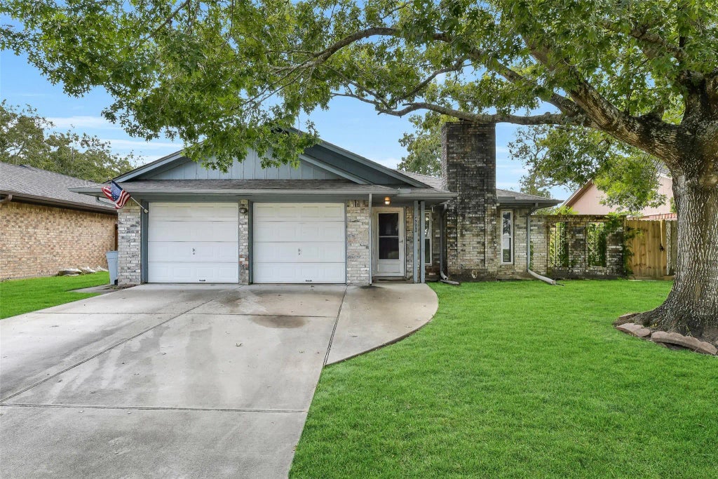 A home to make your own! This 3-bedroom, 2-bathroom single story property is the perfect opportunity for investors or buyers who are ready to add their personal touch. Step inside to find a bright, open living area with a cozy wood-burning fireplace and French doors leading to the backyard. The kitchen offers granite countertops with a raised breakfast bar, gray cabinetry, and an adjoining dining space with natural light. Enjoy a fully fenced backyard with mature trees, a patio area, and a 2-car garage with a double-wide driveway. Conveniently located in the established Forest Bend neighborhood within Clear Creek ISD—just a short walk to Wedgewood Elementary! A great chance to build equity, flip, or hold as a long-term rental in a sought-after area in Friendswood!