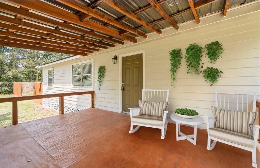 Renovated Charming Single Family Home sitting on 1.62 acres! Welcome to 61 Hicks Loop W — a beautifully updated 3-bed, 2-bath single family home tucked under tall pines in a peaceful, no-HOA neighborhood. Enjoy a bright, modern kitchen with quartz counters, stainless appliances, and open living space with new flooring and finishes throughout. THIS IS NOT A MOBILE HOME , THIS IS A 2002 BUILD SINGLE FAMILY HOUSE Relax on the covered porch swing or unwind in the large fenced backyard with space to play, garden, or gather by the firepit. *Minutes from US-59 & Fostoria Rd Move-in ready and full of charm — don’t miss this one! Home has been virtually staged.