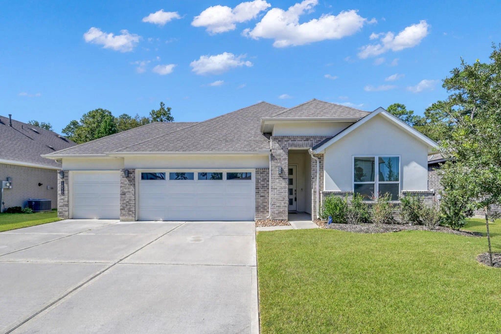 Welcome to 14010 Juniper Point Lane — a beautifully maintained 4-bedroom, 2-bath home in the desirable Fosters Ridge community. Built in 2021, this single-story gem sits on a premium 8,189 sq. ft. lot, offering added privacy and curb appeal. The open-concept floor plan features a spacious kitchen with granite countertops, stainless steel appliances, and a large island perfect for entertaining. Relax in the inviting living area or step out to your screened-in patio, where patio furniture stays—an ideal spot for morning coffee or evening gatherings. The whole-house water filtration system ensures clean, fresh water throughout, and the *three-car garage* provides ample space for vehicles, storage, or a workshop. Zoned to top-rated Conroe ISD schools and just minutes from shopping, dining, and The Woodlands amenities, this move-in ready home blends comfort, convenience, and quality.