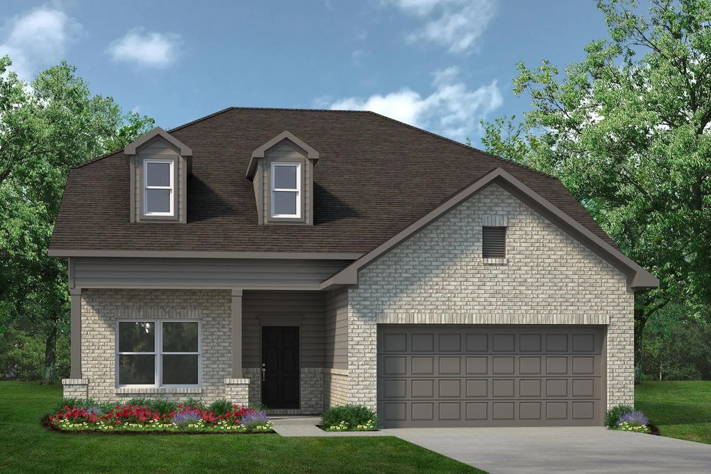 Step into the Princeton II by Smith Douglas Homes—an exceptional 2-story, 4-bedroom, 3.5-bath home in the desirable Kendall Lakes community! Thoughtfully designed for modern living, this home features an open-concept layout with luxury vinyl plank flooring in the main living areas and kitchen. The gourmet kitchen shines with a large island, tile backsplash, and 42” upper cabinets. The serene primary suite offers dual vanities, a garden tub, and a walk-in shower for a spa-like retreat. Upstairs includes three secondary bedrooms, a versatile loft, a dedicated media room, and two full baths—one with dual sinks for added functionality. Enjoy year-round outdoor living on the extended covered patio, complemented by the energy-saving Tech Shield radiant barrier. Available this October!