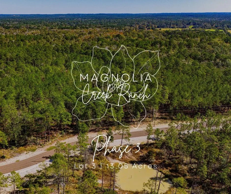 Phase 3, Lot 3 offers 13.05 acres of wooded serenity in the exclusive gated community of Magnolia Creek Ranch, blending natural beauty with modern conveniences for the ultimate East Texas lifestyle. This expansive acreage is perfect for building your dream home or creating a recreational retreat, with privacy and security ensured by the gated setting. Magnolia Creek Ranch features top amenities, including a pavilion, scenic walking paths, and a tranquil retention pond, while the lot is infrastructure-ready with electric and fiber optic connections already in place and future plans for water and gas.