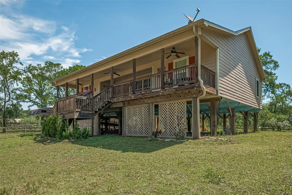 Welcome to your dream equestrian retreat! This charming 3-bedroom, 2-bath home is perfectly perched on stilts, offering both style and function with elevated views of your private 6-acre haven. Fully fenced and thoughtfully designed, this property is tailor-made for horse enthusiasts. Also includes an ADA compliant ramp to the back of the house with ADA compliant interior doors and Hurricane rated windows! There’s an 5-stall (could expand to 8 stalls) barn ideal for boarding, training, or your own equine companions. Tucked away in the woods, you'll also find a peaceful 1-acre pond stocked with bass and catfish — the perfect spot to unwind, fish, or just enjoy the quiet. Whether you're an experienced rider, hobbyist, or simply seeking country charm with modern comfort, this property delivers. Don’t miss the opportunity to own this unique slice of countryside living! Located only a few miles from downtown Rosenberg!