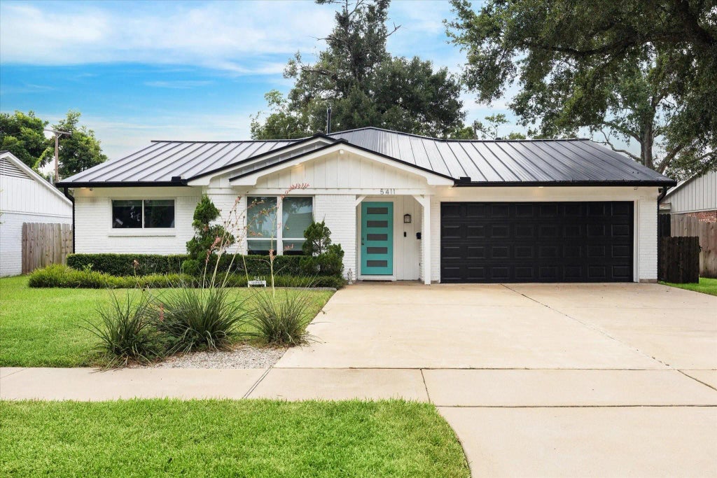 Beautifully updated one-story home in Oak Forest West with a rare oversized primary suite addition. This 4-bedroom, 2.5-bath home features vaulted ceilings and an expansive living room with great natural light. The renovated kitchen flows seamlessly into the dining area—perfect for everyday living and entertaining. The spacious primary suite includes large walk-in closets and a private bath. Additional highlights include a new metal roof and designer lighting fixtures from Rejuvenation. Enjoy a huge backyard with a covered patio, ideal for outdoor gatherings. Located on a quiet street with easy access to 290, Oak Forest, the Heights, and more.