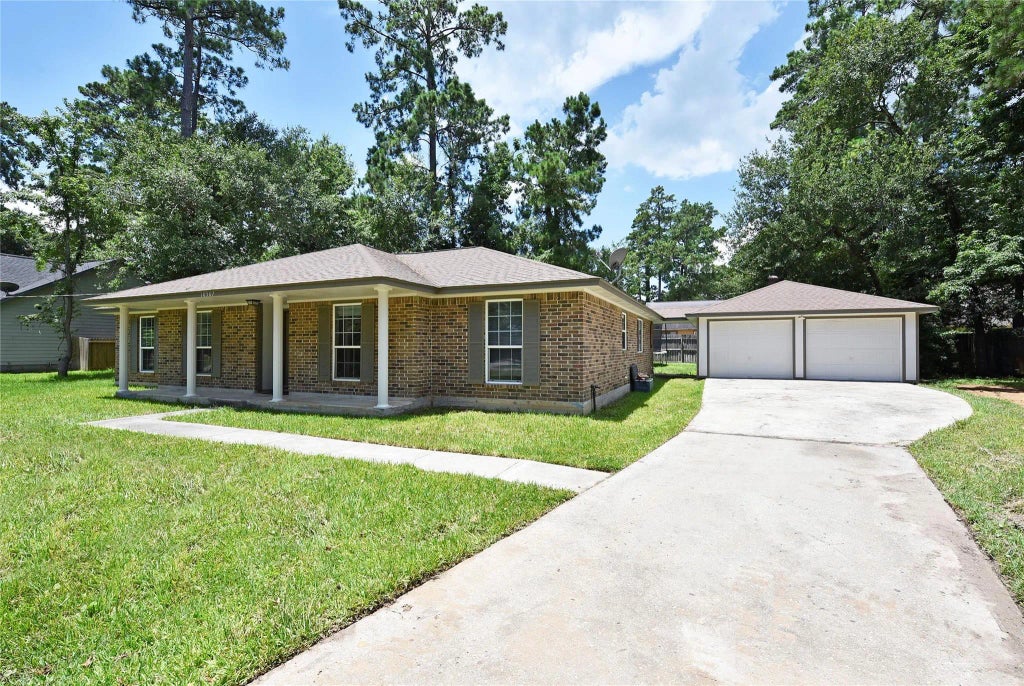 Welcome to 10507 Twin Oak Dr, a charming 1,702?sq?ft, 3-bedroom, 2-bath traditional brick home built in 1986 and set on a serene .45 acre lot in the desirable Lake Chateau Woods community—with no HOA! Step inside to find wood-look tile flooring throughout, a formal living and dining room, and a renovated kitchen featuring granite countertops. Both baths have been tastefully updated, and the spacious primary suite includes an en-suite, walk-in closet, and all bedrooms are conveniently on one level. Outside, enjoy mature trees, a covered patio/deck, and a detached garage with extra parking. Propane heating, central AC, and energy-efficient windows round out this home’s thoughtful features. Residents enjoy a quiet, wooded setting with deer sightings, nearby parks, and top-rated Conroe ISD schools. Just minutes to I-45 and The Woodlands for shopping, dining, and entertainment.