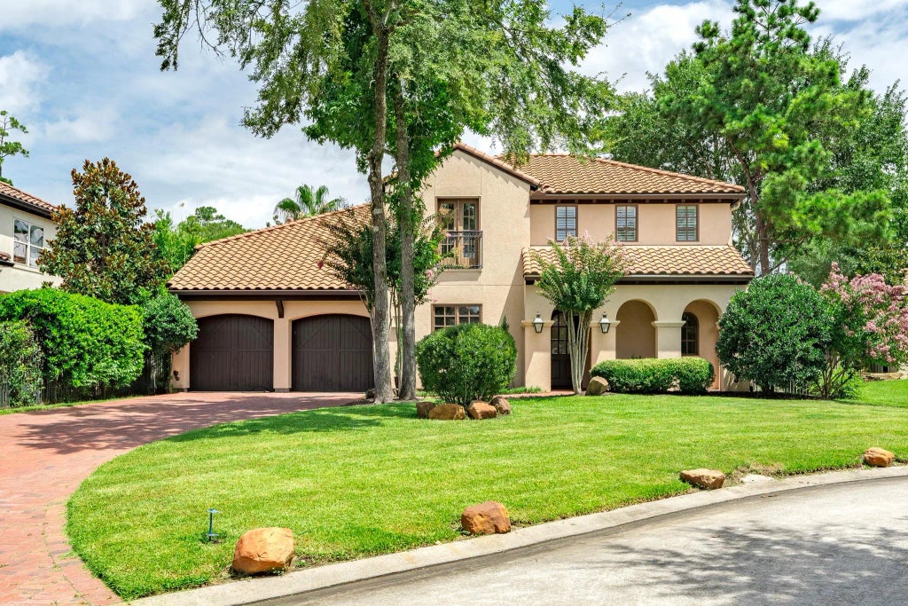 Welcome to 10 Libretto Court, a stunning Mediterranean-style home lovingly maintained by its original owner. Featuring hand-scraped wood floors, detailed woodwork, and upgraded appliances, home exudes elegance. The chef’s kitchen boasts a WOLF 6-burner gas cooktop with pot filler, large center island, and double convection ovens and so much more. The rare floor plan includes both the primary and a secondary bedroom, with full bath, downstairs. Upstairs, you'll find two spacious bedrooms, two bathrooms, a large game room, and a media room. NEW UPDATES: new interior paint and trim, exterior trim, new lighting in kitchen, dining and main living area, new carpet, a new tile roof, and a brand-new three-zone, 15 SEER HVAC system. Perfectly situated within walking distance or a short golf cart ride to the prestigious Woodlands Country Club-Gary Player Course. This meticulously maintained home is move-in ready! Make sure to look at the pool RENDERING of how backyard can be transformed.