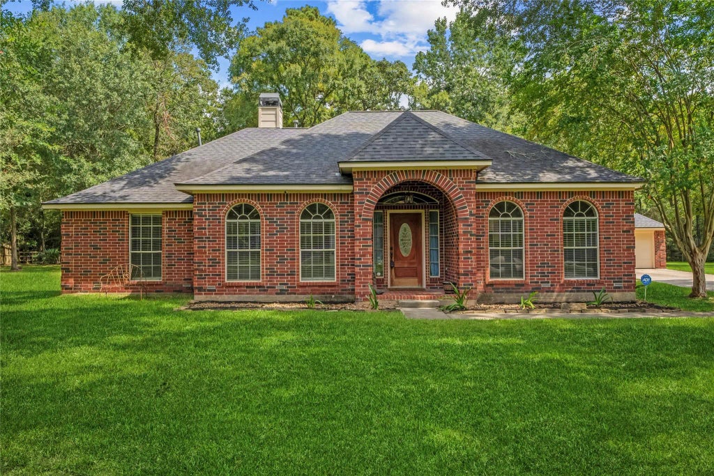 This beauty on 2 acres recently updated in a gorgeous neighborhood where horses are welcome! Relax in the statement piece claw foot tub in primary en-suite or spend evenings on the huge outdoor living space under covered back patio. Either way this property shows off the quiet nature has to offer minutes away from shopping centers.