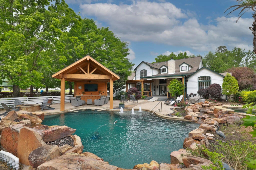 An amazing 6 + acres horse property a rare find located in the city limits of Tomball. Beautiful Custom home totally upgraded with new paint and flooring. Updated chef's kitchen with convection/microwave combo, thermador induction electric stove top, an island, walk in pantry, breakfast bar, New kitchen Aid 3 level dishwasher, Built in refrigerator. Marble countertops and much more. The kitchen is open to a relaxing living room with huge stone fireplace over looking the resort style pool with hot tub. There are 3 outside covered patios surrounding the backyard oasis for those summer nights. Included is a 7 stall Barn master Barn with wash rack, feed room, tack room and paddocks. Bonus room above the garage. You must see to take in all the amenities of the property. Call now to make an appointment!