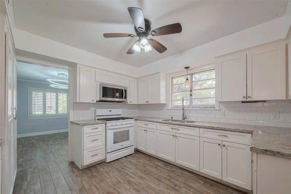 Charming 3-bed, 2-bath single-story brick home on a spacious ¼-acre+ corner lot in the established Pasadena Place community—NO HOA! This beautifully maintained home features mature landscaping, open-concept living, bright, airy rooms, and hard surface floors throughout—no carpet! Enjoy plantation blinds, recently renovated bathrooms, a formal dining room, and a large front flex space with a bay window—perfect for a home office or second living area. The spacious kitchen boasts solid counters, a gas range, ample cabinet and counter space, and an open breakfast nook. The living area opens to an enclosed rear patio, ideal for year-round enjoyment. The primary suite offers a private bath and walk-in closet, with two additional generously sized bedrooms and a full guest bath. Outside, a large backyard and detached 2-car garage with a bonus A/C-equipped workshop or office. Conveniently located near shopping, dining, schools, and Hwy 225 for easy commuting.