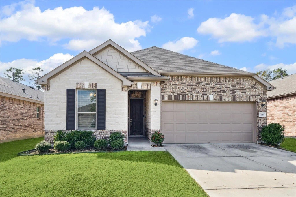 One story 3 bedroom, 2 bath home with media room. The open floor plan allows for interaction between the kitchen, dining and family rooms. The kitchen is equipped with a large island with barstool seating along with plenty of cabinet space and a walk-in pantry. The dining room flows into the family room that features ample natural lighting. The primary bedroom overlooks the private backyard and the bath features an oversized shower with bench seating, double sinks and linen closet. The two secondary bedrooms share a generous sized bathroom with vanity area. The backyard has no back neighbors, a large, covered patio with custom carved concrete flooring, ceiling fan and optional fire pit. Refrigerator, washer and dryer included! Close proximity to I-45 and schools. Schedule your tour today!