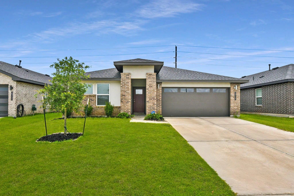 one-story home featuring 4 bedrooms, 3 baths, and 2 car garage. The foyer opens to one guest bedroom and bath, study and entry coat closet. Kitchen includes breakfast bar with beautiful counter tops and stainless steel appliances. Open concept floorplan boasts large family room and separate dining/breakfast area. Two additional bedrooms and bath are situated just off the common living area. Private primary suite with attractive primary bath features dual vanities, water closet and walk-in closet. The standard rear covered patio is located off the family room. Buyer understands that the solar equipment may be considered leased property, and ownership of solar equipment does not convey. The seller makes no representation or warranty regarding the solar equipment.