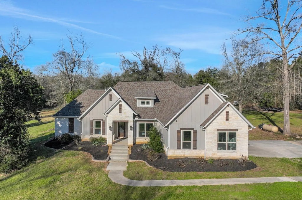 Experience modern country living with this custom home on 11 picturesque acres. The heart of the home is the open concept living, dining and kitchen area with wood look tile flooring, high wood beamed ceilings and a wall of windows overlooking the back of the property. The island kitchen features quartz countertops, gas cooktop with pot filler and dual ovens. The home has a split plan with the primary suite on one side and guest rooms on the other. The main floor also includes a dedicated home office. Upstairs the flex room could be used as an additional bedroom, game room or home gym and the attic offers additional expansion potential. The oversized 3-car garage comes equipped with an electric plug for your Tesla or other EV. Outside, approximately 5 acres are cleared while the remaining wooded acreage provides privacy and natural beauty. This property is conveniently located just minutes from the town of Coldspring, with access to Highways 59 and 45 for trips into Houston.