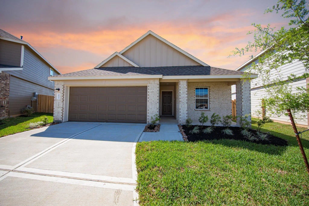 Welcome to Granger Pines, one of Legend's newest communities in Conroe, TX! The Ravenna floor plan is a charming 1-story home with 3 bedrooms, 2.5 baths, flex space, and 2-car garage. This home has it all, including vinyl plank flooring throughout the entire home! The gourmet kitchen is sure to please with 42" white cabinetry, granite countertops, and stainless-steel appliances. Retreat to the Owner's Suite featuring a separate tub and shower and walk-in closet. Enjoy the great outdoors with a sprinkler system, covered patio, and no back neighbors! Don’t miss your opportunity to call Granger Pines home, schedule a visit today!