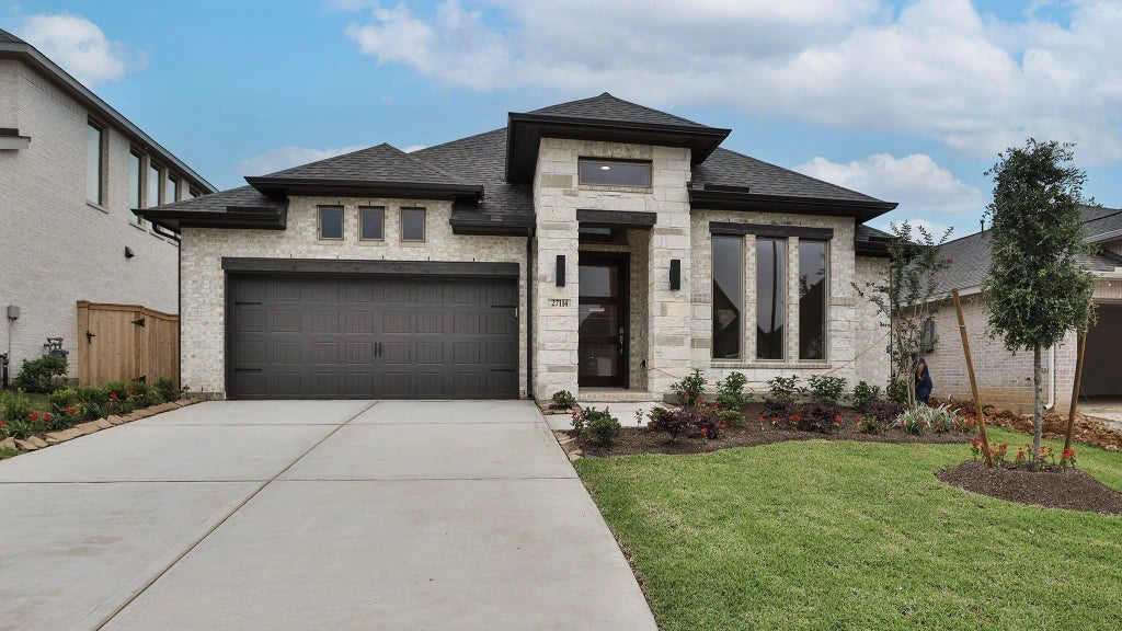 READY FOR MOVE-IN! Entry with 13-foot ceilings framed by game room with French doors. Extended entry flows to the kitchen and dining area. Island kitchen with built-in seating space and a corner walk-in pantry. Family room with a wood mantel fireplace and wall of windows. Secluded primary suite. Primary bath offers dual vanities, garden tub, separate glass enclosed shower and two walk-in closets. Guest suite with a full bathroom and a walk-in closet. Secondary bedrooms and a utility room complete this one-story design. Covered backyard patio. Mud room just off the three-car garage.