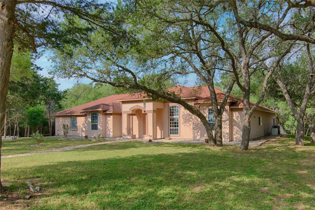 Beautiful custom built Mediterranean style home on idyllic heavily wooded 4.6 acres near Schulenburg, TX. Completely remodeled in 2025, this 2,863 square foot, 3 bedroom, 2.5 bath home features all new lighting fixtures, new luxury vinyl tile flooring, with freshly painted walls and ceilings throughout. All new appliances, cabinets and granite countertops accentuate the spacious kitchen. Large, partially covered, terracotta-tiled outdoor entertainment area overlooks a stunning forest of live oaks, cedar, and fruit trees. Attached covered parking accommodates three large vehicles with a bonus storage space. A steel 448 square foot outdoor shed has electricity and offers potential as a shop or additional storage. A Generac generator provides backup electricity for the entire site. Centrally located between Houston, San Antonio and Austin. Call for a showing today!