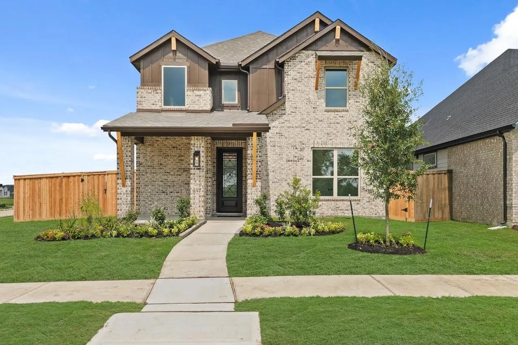 Welcome to the Bellini plan. This 2 story home provides plenty of space for your living needs. The living area, dining and kitchen are all open with beautiful wood look flooring. The kitchen has a large island with bar stool seating space and built in appliances. The primary suite has dual sinks, large shower, and a large walk-in closet. A secondary bedroom is downstairs. Upstairs are three additional bedrooms, a full bath, and large loft space. SMART HOME package includes a whole home Wi-Fi router, deadbolt lock with touchscreen keypad, video doorbell and Pro smart thermostat. Other features include spacious yard with covered outdoor living, 8-foot doors throughout the first floor, tankless water heater system, full sod yard & sprinkler system also included. Proximity to top rated schools, recreation center, wave pool, dining, shopping & golf course!