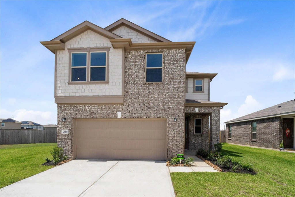 KB HOME NEW CONSTRUCTION - Welcome home to 25418 Benroe Street located in Katy Trails and zoned to Katy ISD! This stunning, two-story home features 3 bedrooms, 2 full baths, 1 half bath, and an attached 2-car garage. Additional features include stainless steel Whirlpool appliances including microwave, 42" Woodmont Belmont cabinets and granite countertops in the kitchen, wrought iron stair rails, loft area, dual vanities in primary bathroom, vanity with knee space in the secondary bathroom, tankless water heater, 8' entry door, SmartKey and SmartCode Entry Door Hardware, 2" faux wood blinds, gutters to the front of the home, black exterior coach lights, and a patio slab in the back. You don't want to miss all this gorgeous home has to offer! Call to schedule your showing or your self-guided tour today!