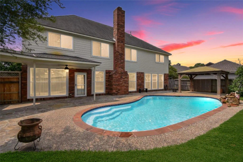 Looking for a meticulously well-maintained, updated home? This Perry Executive Class home is it all! It offers 5 bedrooms, 3.5 baths, study, game room, 2-car oversized garage, and a resort-style pool and pavilion. It is designed for both family enjoyment and entertaining! As you enter the elegant foyer that is flanked by the formal dining room and study, you will be impressed with the spacious family room with built-in alcove and fireplace. The gourmet kitchen is a chef's delight with granite counters, SS appliances, a plethora of cabinets and a huge island with an electric cooktop with retractable vent. The large breakfast area overlooks the backyard pool as does the master suite with large jetted tub, separate shower, dual vanities and dual closets. Upstairs is a huge game room surrounded by two bedrooms and a bath on both sides as well as a flex room at the stair landing. Great access to the Houston Med Center/Downtown via the Fort Bend Tollway as well as Hwy 6 and US 59!
