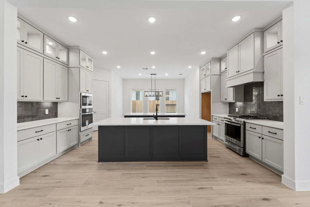 Two Islands, One Perfect Kitchen, Zero Rear Neighbors The Lakeway plan delivers everything your inner host has dreamed of. This one-story layout spans 2,649 sq. ft. with 4 bedrooms, 3.5 baths, and a 3-car tandem garage. The star of the show is the double island kitchen made for gatherings that always end up where the food is. Sliding patio doors open to an oversized covered patio overlooking a private greenbelt with no rear neighbors. Inside, the open flow connects your entertainer’s kitchen to a spacious living area, plus a flex room and a dedicated office for true work-life balance. Located in Evergreen, a nature centered master planned community with premium amenities and convenient access just 15 minutes from The Woodlands. Estimated completion January 2026.