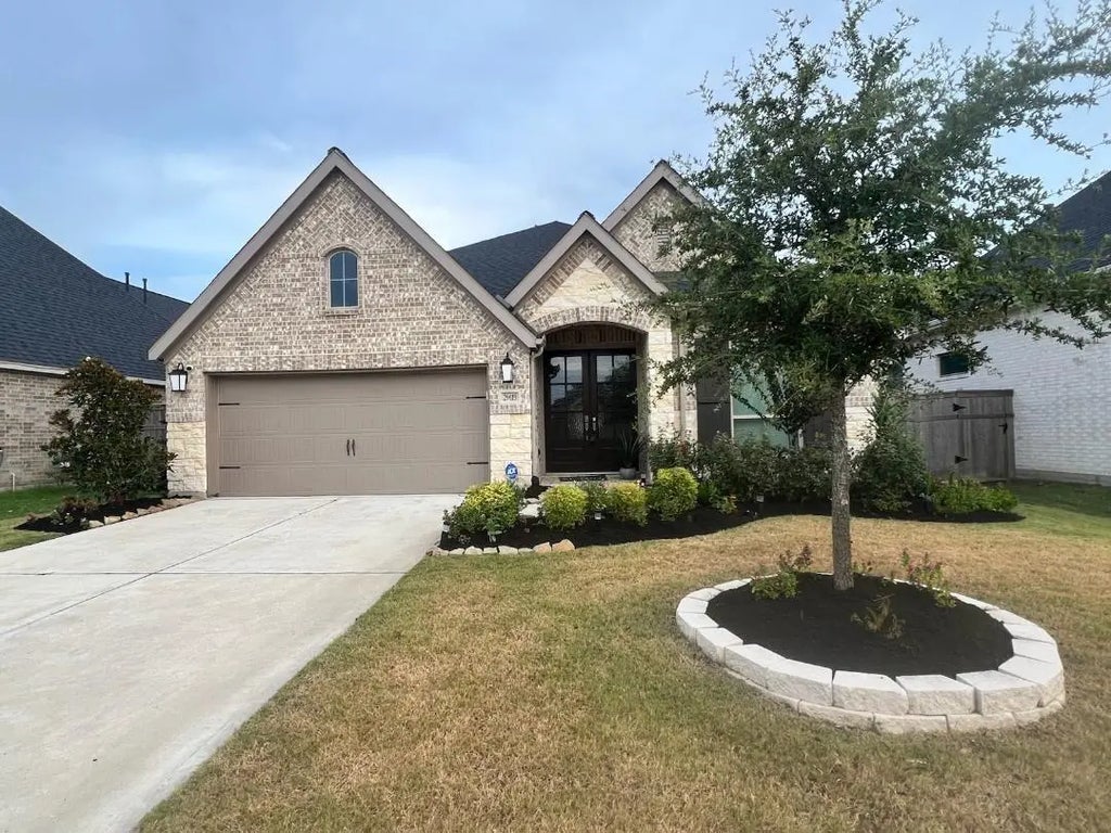 Welcome to this wonderful! one story 2023 contemporary home w/4 bedrooms & three full baths built by Perry homes. The double door grand entry leads you into the office w/french doors. High ceilings & a open flow leads into the gourmet kitchen w/lots of storage. The oversize kitchen island has a sink with a triple filtered water system, dishwasher, underneath storage cabinets, & bar seating. A counter gas range with a hidden vent hood & built in microwave over an electric built in oven. Open dining rm leads to the family rm. Guest suite has its own private bathrm. Split 2 bedrms located on the other side w/a full bathrm. The primary bath suite is stunning with 2 separate sink vanities, & his and her closets, huge garden tub, and a seated separate shower. Extra Mud room for shoes, coats etc. Huge covered back patio 20-6” x 10ft is great for entertaining & relaxing. Included in rent is the Home warranty, Trash pickup, Yard maintenance, Water softener & Lots of HOA amenities. What a deal!
