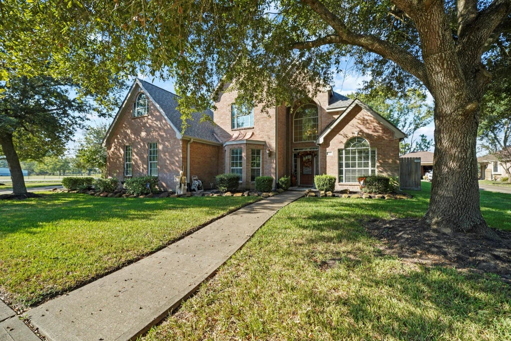 This was the neighborhood developer's home who built Sawyers pond. It is a great floor plan with a side gate along driveway to park your boar or trailer. Impressive entryway. Beautiful granite kitchen opens up to the family room. Good size rooms. Master has office/study connected and elegant wood floors. 4 sides brick. Pool has a slide & a grotto. Huge yard great for entertaining. Very laid back & peaceful community, just perfect for families w/children.11x18 Room upstairs could be 5th bedroom. Ideally located near 518 and McHard to ease the commute. Award winning Pearland Schools and youth sports, this town has everything for your family.