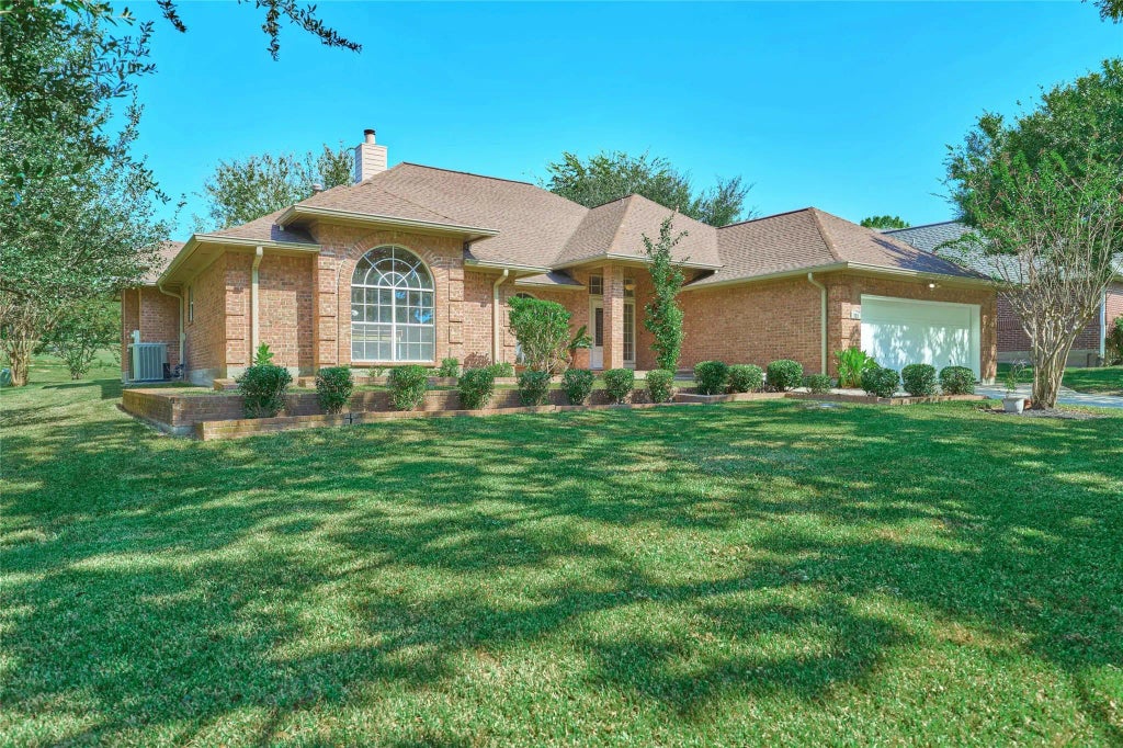 Welcome to one of April Sound's premier golf course homes w/stunning golf course views. This single story home boasts an inviting POOL on a spacious lot, ideal for entertaining. Enjoy April Sound's top notch amenities including pools, fitness center, tennis/pickle ball courts, boat launch, marina & various golf membership options. The open floor plan is amazing & flows seemlessly with tile floors throughout (no carpet!). The kitchen features a huge walk-in pantry, center island, granite counters, plenty of counter & cabinet space & incl a wet bar w/beverage frige. Right off the kitchen is the spacious & entertaining formal dining rm. Kitchen is open to the family rm/sitting rm overlooking pool & golf course. The spacious living rm boasts a gas log fireplace. The primary suite offers golf course views, an executive bath w/dual vanities, 2 closets, a bidet, recently updated shower & soaking tub. This home also offers a separate golf cart garage!