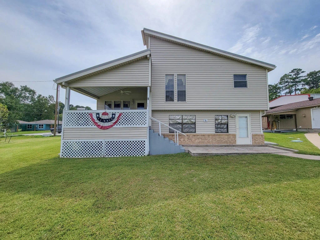 Extremely well maintained home. The second floor of this home being the main living area has a fantastic view of the Lake Livingston and the marina. Home has a light and open concept with high ceilings with plenty of windows to view the lake. Brand new snap in wood vinyl flooring. Big beautiful well kept yard with an outstanding large mature Oak tree in the front yard, just across the street from the lake. The approximately 24 X 23 garage is over sized with room for a work shop, plus two vehicles with a RV hookup as well. The metal roof is approx. 5 years old. Home is ideal for a weekend getaway as well or as a full time residence. Plus renters have access to the club house, pool and fishing pier. A quiet laid back mature neighborhood just down the road from the Cape Royale golf course. A very comfortable home in which to watch the sun come up in the mornings over Lake Livingston.