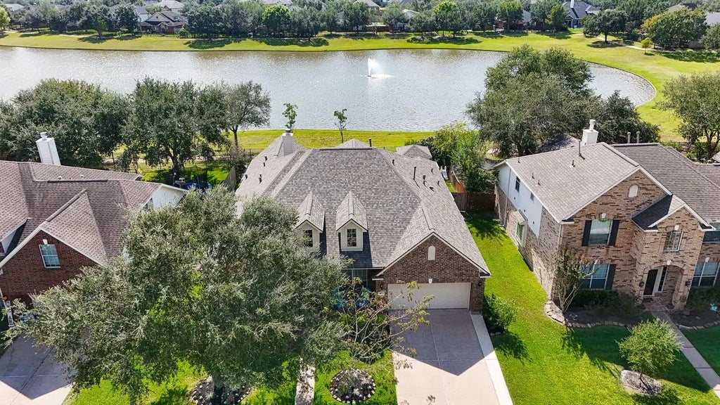 WOW! STUNNING LAKEFRONT 1-story with POOL & 3-CAR GARAGE! 4 bedrooms, 3 full baths in a highly desirable GATED COMMUNITY with STUDY, FORMAL DINING, and the open floor plan you’ve been searching for. Designer updates throughout including a SHOW-STOPPER KITCHEN with quartz counters, lighted ceiling-height cabinets, ZLINE chef’s gas range, central island, stylish backsplash, and shiplap accents. Private study with custom built-in library and double doors. Elegant dining with easy kitchen access. Spacious living room with shiplap & stone fireplace and a wall of windows showcasing breathtaking triple-fountain lake views. Plantation shutters, raised-ceiling primary suite, and spa-inspired bath with seated vanity. Backyard oasis features a covered patio with wood ceiling, outdoor cabana kitchen/bar, sparkling pool, and serene fountain-view lakefront! Recent roof.
