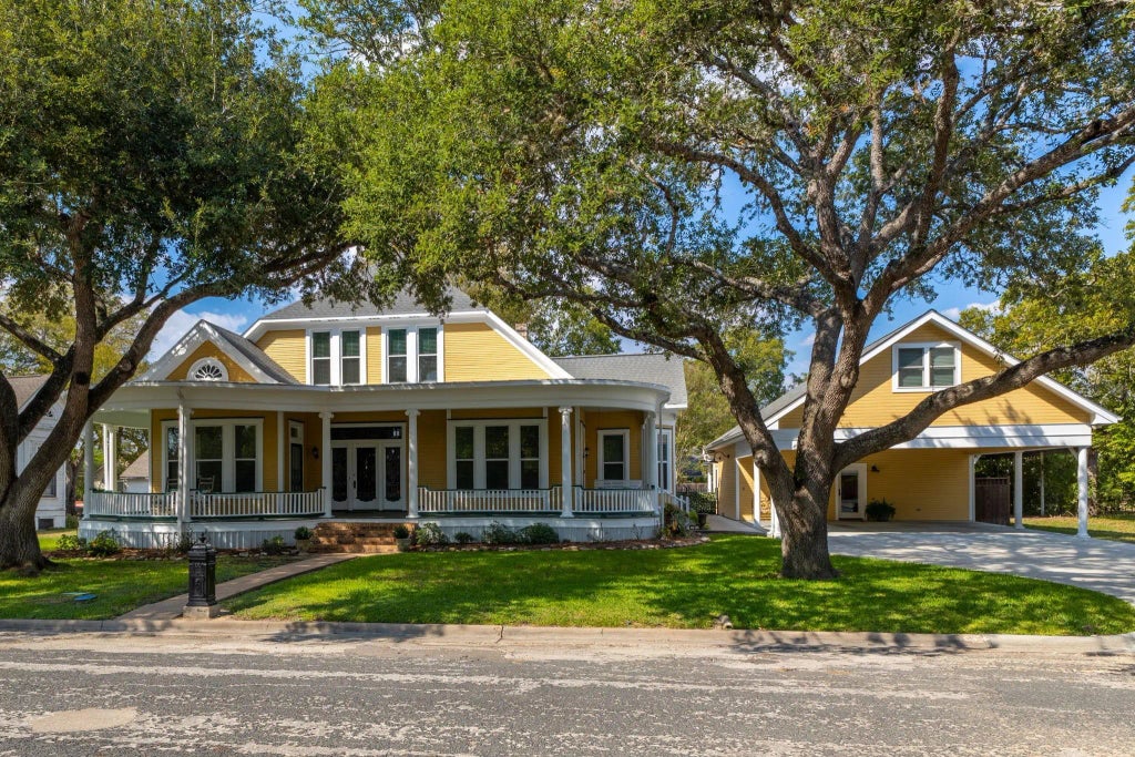 Victorian 3251 SF masterpiece crafted w/elegance so rare it still stands today as symbol of grace & grandeur. 4 bedrooms, 3 baths & 3,251 SF of splendor. Stained-glass entry door opens to world where craftsmanship reigns supreme. The wrap-around porch, parlor and sitting rooms. Every detail tells a story—wood floors, new windows, delicate built-ins, soaring ceilings and the formal dining room where history seems to echo. Den complete with fireplace, radiates warmth. Grand staircase, a showpiece rises like a sculpture. Kitchen blends the spirit of the past with the joys of modern living. Beyond the walls, the estate transforms into a private paradise. Outdoor kitchen, shimmering gunite pool & spa. Elegant outdoor sitting area. 897 SF garage apartment extends the enchantment, complete w/kitchen, bath & upstairs office/bedroom. A 2-car carport ensures every detail of convenience is met without compromising the home’s regal presence. This is not simply a residence, it's a dream estate.