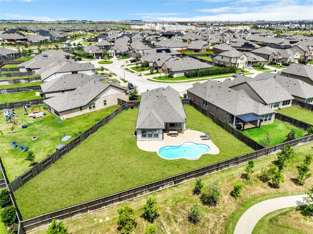 Discover this like new home, rare one-story gem on an oversized around 14,000 sq ft lot, perfectly designed for Texas living! The sparkling pool is the showstopper—your own private backyard oasis—complete with a covered patio ideal for entertaining or relaxing all year round. Offered with 3 spacious bedrooms, 2 luxurious bathrooms with walk-in showers, and a flexible office with French doors—perfect for working from home or converting into a playroom or guest space. Located minutes from top-rated schools, I-10, Texas Heritage Parkway, Westpark Tollway, and new H-E-B and shopping center opening soon! This home is in Jordan Ranch, an award-winning Master-Planned community with incredible amenities, trails, and community events that bring neighbors together. Additions include: Full house gutters, whole house blinds, ceiling fans, and upgraded carpet! Don’t miss this opportunity to own a single-story home with a pool on a massive lot in one of the most sought-after neighborhoods in Katy!